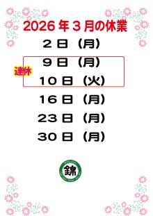 栃木県那須塩原市 寿司 うなぎ 宴会 和食店 忘年会 新年会 法要など 割烹 錦鮨 |